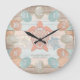 Nautical Beach Stripes, Sea Glass, Turtle Large Clock