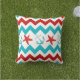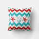Nautical Beach Red Teal Chevron Anchors Starfish Outdoor Throw Pillow with red and turquoise chevron stripes with teal turquoise blue anchors and bright red starfish centred in the middle of the chevron pattern. Great for the beach house decor or out by the pool.
