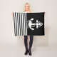 Nautical Black White Stripes and White Anchor Fleece Blanket