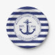 Nautical Blue Anchor Family Reunion Navy Stripes Paper Plate