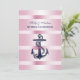 Nautical Blue Anchor Pink BG V Wedding Invitation