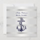 Elegant Nautical Navy Blue Anchor, Silvery White Background - Bridal Shower Invitation