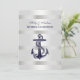 Elegant Nautical Navy Blue Anchor, Silvery White Background - Wedding Invitation