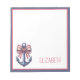 This cute notepad features a coastal nautical blue anchor with preppy red and white stripe bow and a matching blue and red trim on the edges. Personalize with your choice of name or special text.