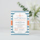 It's a boy! Elegant nautical blue and white stripes with bright orange anchor baby shower invite striped pattern with vintage formal look. Great for nautical, boat, ocean theme baby showers. Can also be changed to it's a girl for girl baby shower.