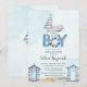 Nautical Blue Boat Beach Huts Boy Baby Shower Invitation
