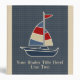 Adorable sailboat graphic in rich red, dark blue and cream, makes a great nautical theme design for kids, boys or the sailing or boating enthusiast. Add your personalized text for a custom gift idea. Sail boat has a triangle sail with red stripe, blue stripe and cream tan stripe. Blue and beige tartan plaid background pattern adds to the Rustic Americana theme. Design Copyright © CuteComfy.