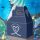 Nautical blue and white wedding favour box for a bride and groom. Great for a Navy (military) or lake house wedding. Design features a heart shaped rope with anchor and couple initials in the middle. Personalize it with your wedding details.