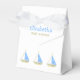 These fun baby shower favour boxes feature nautical sailboats with blue and white stripe sails. Personalize with your choice of special text on the front and back.