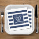Nautical blue and white striped wedding napkins. Great for a Navy (military) or lake house wedding. Design features a heart shaped rope with anchor and couple initials in the middle. Personalize it with your wedding details.