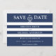 Nautical blue and white wedding save the date card. Great for a Navy (military) or lake house wedding. Design features stripes and a heart shaped rope with anchor and couple initials in the middle. Personalize it with your wedding details and send to all of your family and friends.