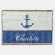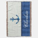 Nautical Blue Stripes Pattern Anchor Custom Name Throw Blanket