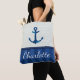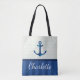 Nautical Blue Stripes Pattern Anchor Custom Name Tote Bag