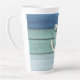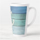 Turquoise/qua, blue, and white distressed (printed design) wood latte mug with an anchor and personalized with your name or any text you choose. Perfect for your beach/vacation home or rental.