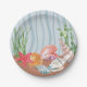 Nautical Blue Watercolor Seashell Beach Wedding Paper Plate
