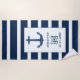 Nautical blue White Anchor Personalized Monogram Beach Towel