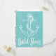 This fun invitation features a hand drawn white ship anchor with an old rope highlighted against a blue turquoise distressed background that will remind you of the ocean. A Bridal Shower announcement is