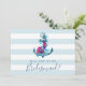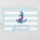 Nautical Will You Be My Bridesmaid Card design featuring anchor with flowers on a blue stripes background.