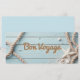 A fun greeting card with a nautical design of ropes, starfish and sand on a blue wooden backdrop.