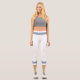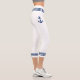 Women's Capri leggings featuring a custom designed nautical boat anchor with stylish navy blue stripes on white or easily customize to match your favourite colour.
