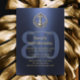 Nautical Navy Blue Gold Anchor 80th Birthday Party Invitations.