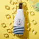 Nautical, Boat Name,Anchor Navy Blue Stripes Bottle Cooler