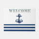 Nautical Boat Name,Anchor Navy Blue White Stripes Doormat