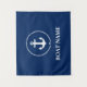 Nautical Boat Name Anchor Rope Navy Blue Wall Tapestry