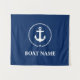 Nautical Boat Name Anchor Rope Navy Blue Tapestry