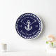 Nautical Boat Name Anchor Rope Navy Blue White Clock
