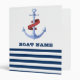 Nautical Boat Name,Blue Anchor Navy Blue Striped Binder