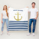 Nautical Boat Name,Gold Anchor Navy Blue Stripes Fleece Blanket