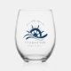 Nautical Boat Name Ship Wheel Navy Blue Stemless Wine Glass