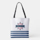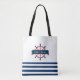 Nautical Boat Wheel, Navy Blue Stripes Tote Bag