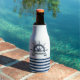 Nautical Boat Wheel, Navy Blue White Stripes Bottle Cooler