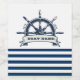 Nautical Boat Wheel, Navy Blue White Stripes Wine Label