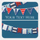 Nautical Bunting design with sailboats, anchors, diffuse lettering and stripes in the colours of red, white and blue, typical of nautical and coastal livin and maritime topics.