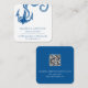 Nautical business cards feature a top border of blue illustrated rope and anchor. Add your personal contact information in a unique square format with rounded corners. The calling card reverses to a solid blue colour with your name, address and QR code. Perfect for boat captain, marine, sailor or whatever you like. To see my complete line visit www.zazzle.com/vginvites