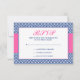 A chic navy blue and white chevron pattern with pink wedding RSVP response card. Easily customize with your details!