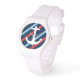 A stylish timepiece is always a classic gift. Design feature a white ship anchor against a nautical navy and red background.