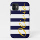 Nautique chic bleu et blanc rayé personnalisé iPhone 5 à peine Là coque.