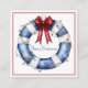 These cute coastal inspired stickers feature a nautical blue and white life preserver wreath decorated with a red bow and Christmas lights. Personalize with your choice of special holiday text on the front and back.