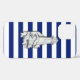 A silver chrome like applique on a navy blue style stripes print decor for a perfect nautical look.