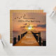 A romantic wedding anniversary invitation featuring a sunset on a jetty at the waterfront. The back shows a gold stylized pied de poule design. If you like, you can also choose for a custom image or plain background colour.
