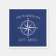 Perfect for beach parties or nautical themed entertaining, these napkins feature a compass rose, with a navy blue background, and the family name with EST date. *Please contact me through Zazzle Chat if you would like more matching products or other colorways.