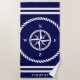 Nautical compass star rose navy blue and white Beach Towel . North East South West sign. Maritime theme towel personalized with name or boat name. Great for beach , pool, boat etc.