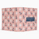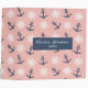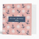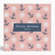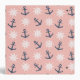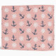 Nautical anchor and ship steering wheel pattern in navy blue, white and coral.