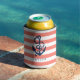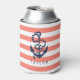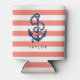 Nautical Coral Stripe & Navy Anchor Personalized Can Cooler