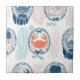 Nautical Crab Blue Orange Coastal Striped Pattern Tile