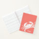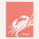Pretty coral pink notebook printed with distressed look crabs. On the front is a large single crab, and space for you to add your name. Simply hit CUSTOMISE and change the text to suit. On the rear of the notebook is a pattern of weathered look crabs. Coral pink and white seafood print notebook. Nautical notebook.